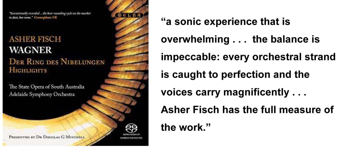 There was almost complete consensus about the quality of the recording and there is no reason to have second thoughts on that matter. Recorded live there has to be some stage noises and other disturbances, but they are surprisingly few and musically the balance is impeccable: every orchestral strand is caught to perfection and the voices carry magnificently. On these two discs with a total playing time of more than 2½ hours several purely orchestral sections are included, displaying superb playing in all departments. The dynamics are very wide indeed and when listening to most of this set on a portable CD player with headset, this caused me problems. I had to adjust the volume all the time to protect my eardrums. Listening in a fairly large hall and preferably in surround SACD one is in for a sonic experience that is overwhelming. The prelude to Das Rheingold with its crescendo from near inaudibility to ear-shattering fff is fascinating. Asher Fisch has the full measure of the work, even though he is best appreciated in the complete work. Bleeding chunks, as here, also reveal his credentials as a Wagnerian and we have to be grateful to Melba for giving us several long, unbroken scenes instead of chopping up the music in small ‘highlights’. Thus we get the final scene from act I of Die Walküre to the very end of the act. This is possibly the best singing in the whole cycle. Siegmund and Sieglinde can stand comparison with almost any of their counterparts on record. Skelton is youthful, brilliant and sensitive and the late-lamented Deborah Riedel is truly glorious. They are just as good in the second act, where Sieglinde’s solo, beginning Da er sie liebend umfing, is marvellously performed. From the third act we only get the Ride of the Valkyries, brilliant and with tremendous force, and Wotan’s farewell which is strongly and sensitively sung by John Bröcheler. Just listen to Der Augen leuchtendes Paar. He had been heard in top shape in a long excerpt from the finale of Das Rheingold, where not all the Gods were as good. Before that we had a glimpse of John Wegner’s strong and expressive Alberich